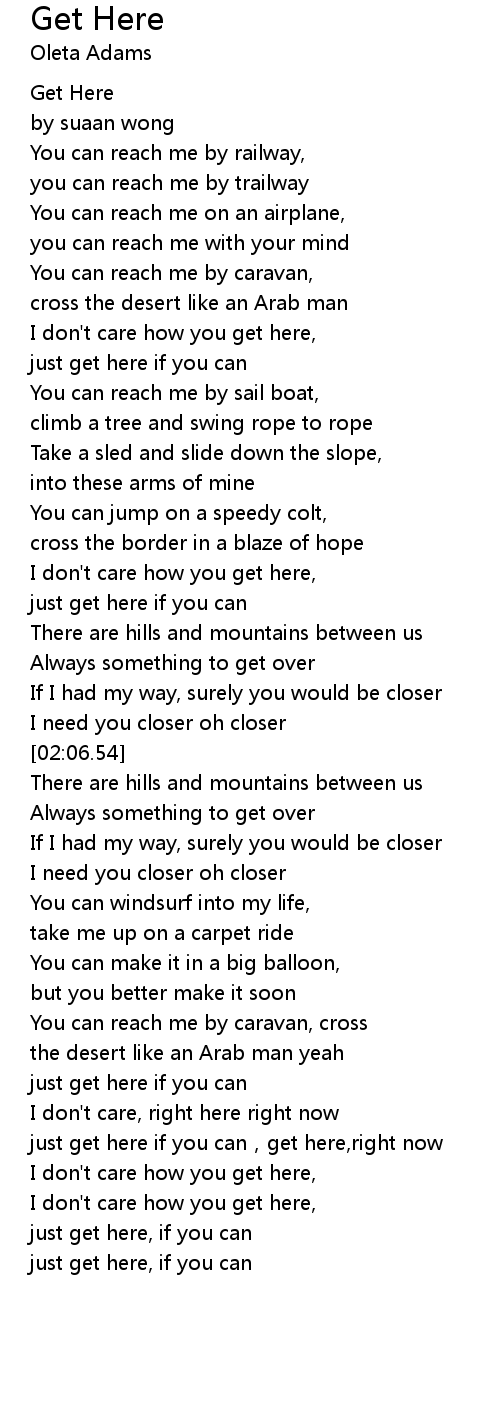 | [00:57.26] | I don't care how you get here, |