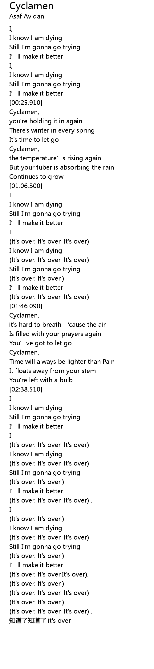 | [03:08.490] | (It's over. It's over. It's over) |