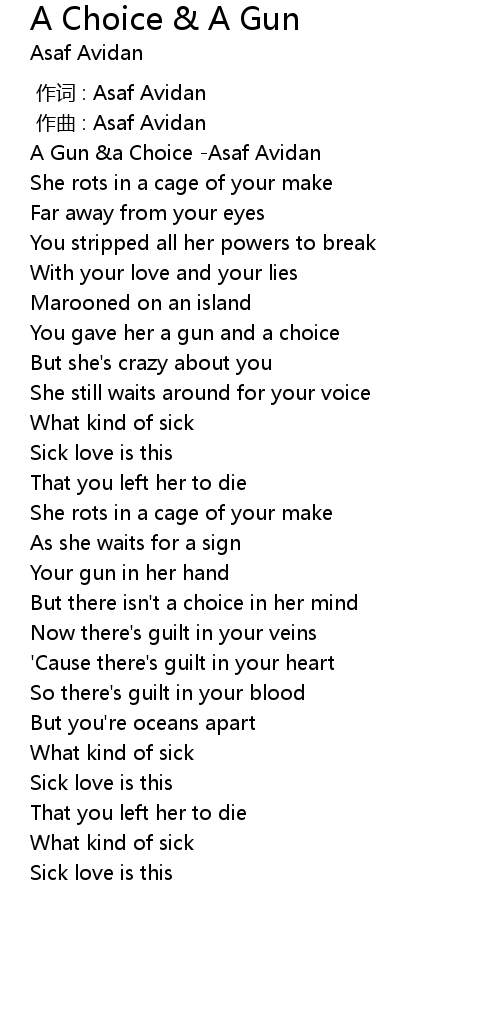 | [00:00.770] | A Gun a Choice Asaf Avidan |