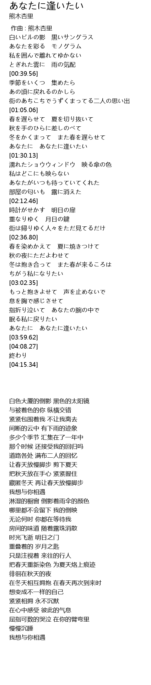 | [00:00.00] | 作曲 : 熊木杏里 |