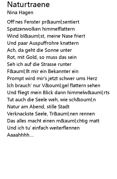 Ich brauch' nur Vögel flattern sehen |