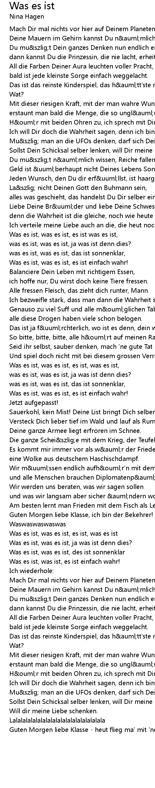 Was es ist, was es ist, es ist, was es ist, |