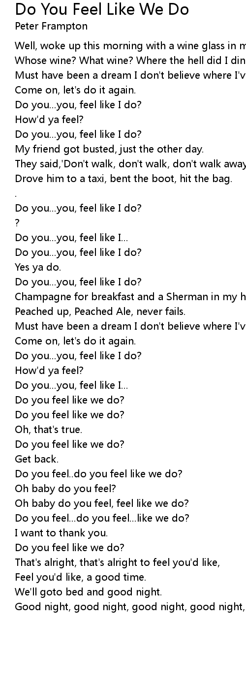 Do you...you, feel like I do? |