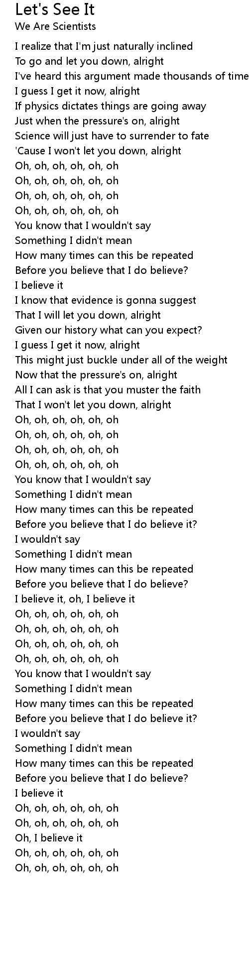 I believe it, oh, I believe it |