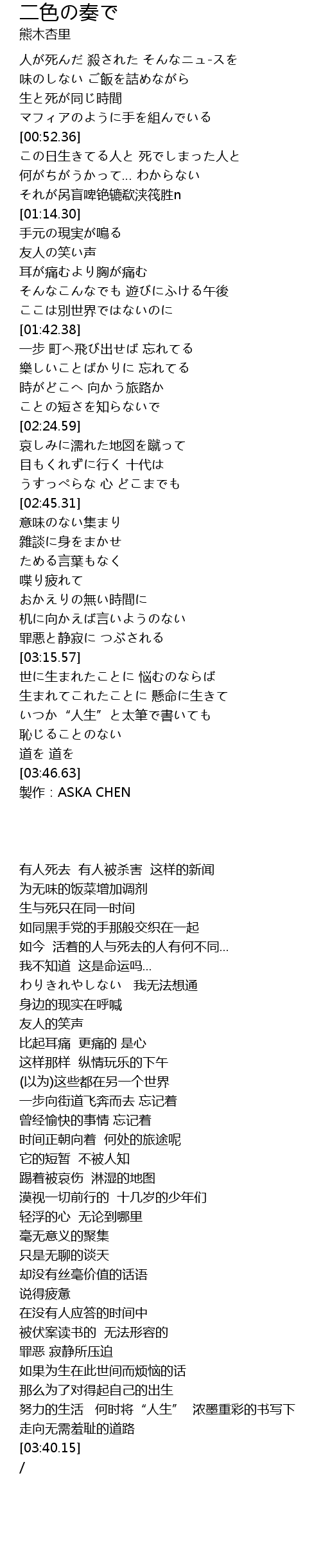 | [03:50.37] | zhi zuo: ASKA CHEN |
