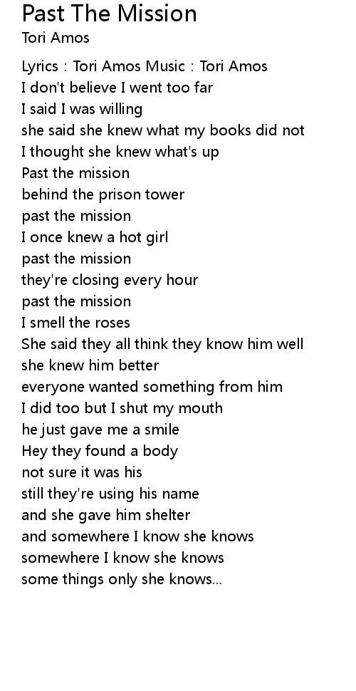 | Song | Past The Mission |