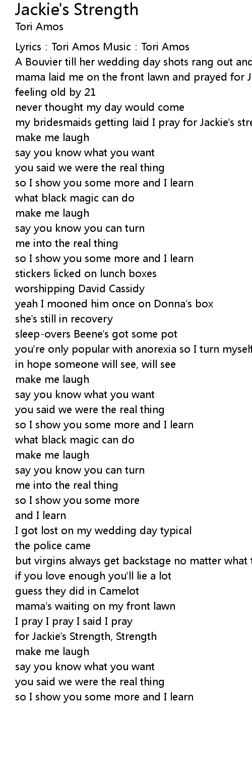 | Song | Jackie's Strength |