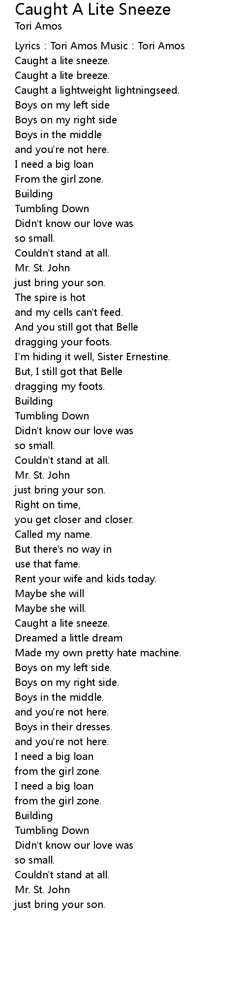 | Song | Caught A Lite Sneeze |