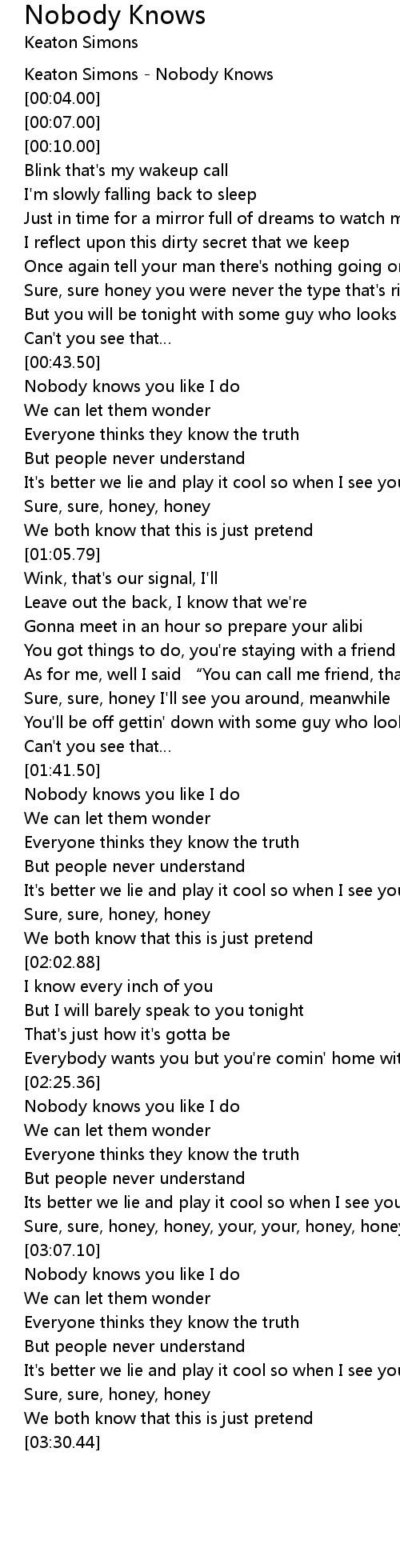 | [00:01.00] | Keaton Simons Nobody Knows |