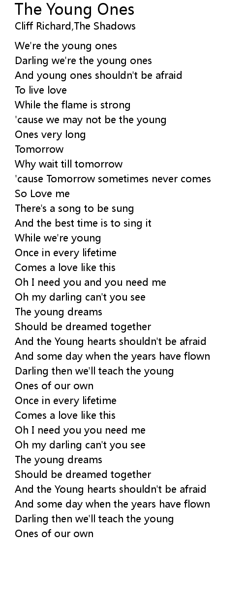 'cause we may not be the young |