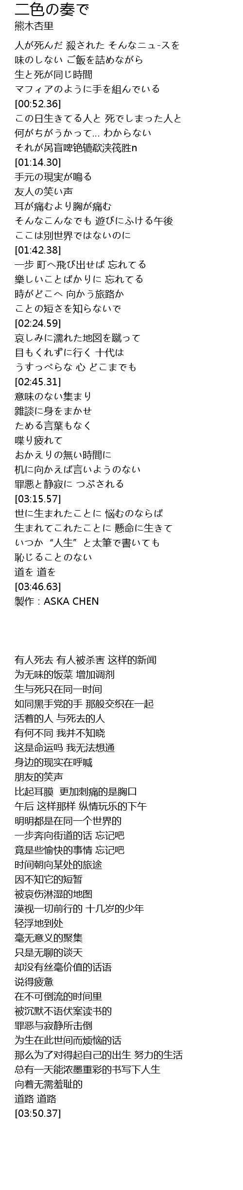 | [03:50.37] | zhi zuo: ASKA CHEN |