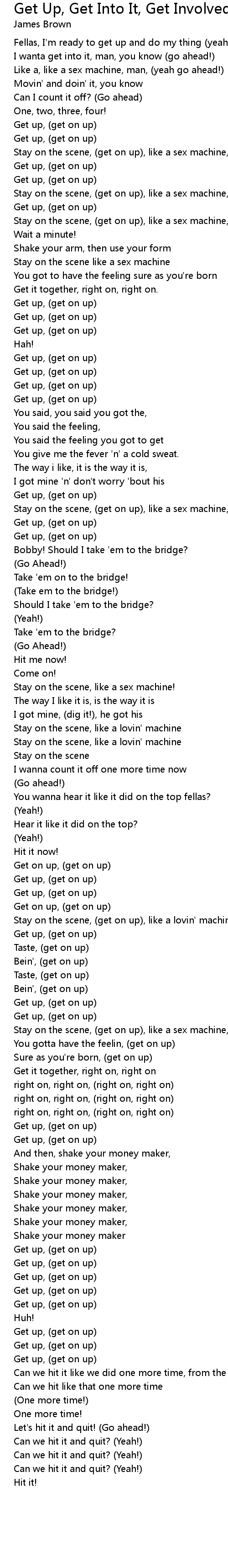 Like a, like a sex machine, man, (yeah go ahead!) |