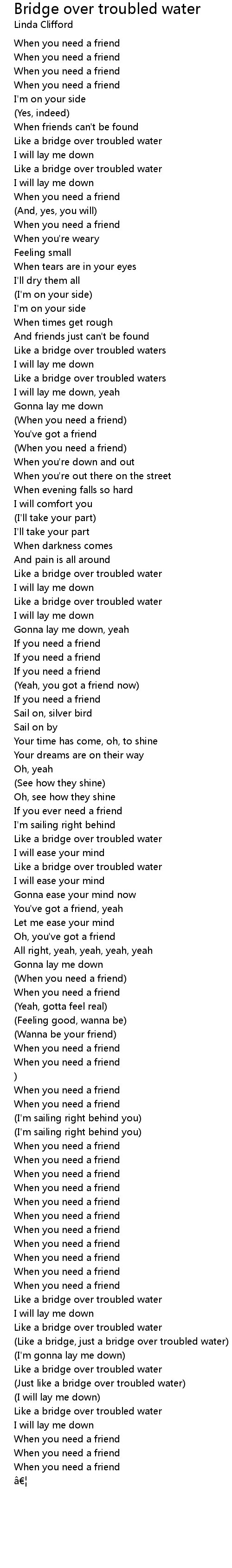 | (Like a bridge, just a bridge over troubled water) | |