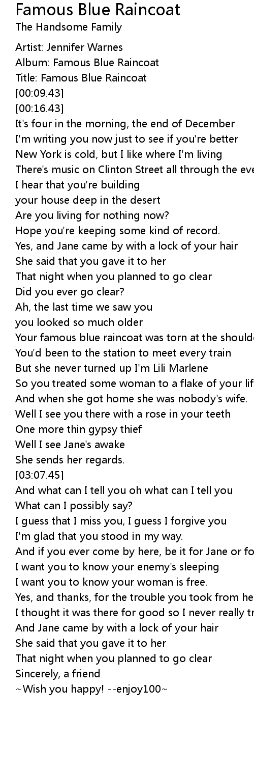 Title: Famous Blue Raincoat |