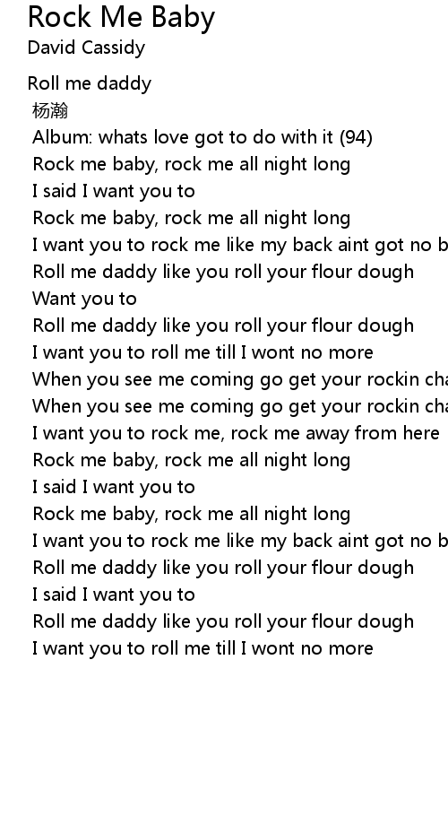 | Rock me baby, rock me all night long | |