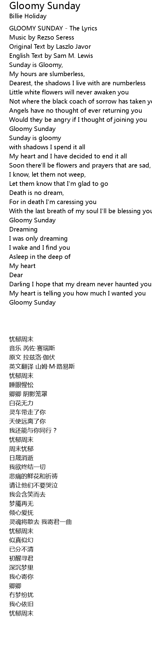 GLOOMY SUNDAY - The Lyrics |
