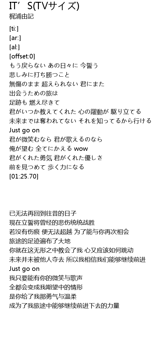 | [01:19.94] | 前を見つめて 歩く力になる |