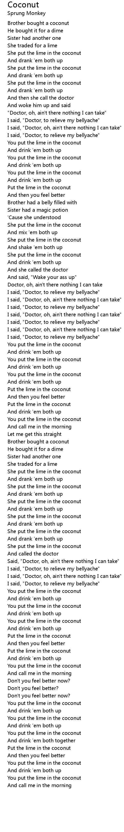 She put the lime in the coconut |