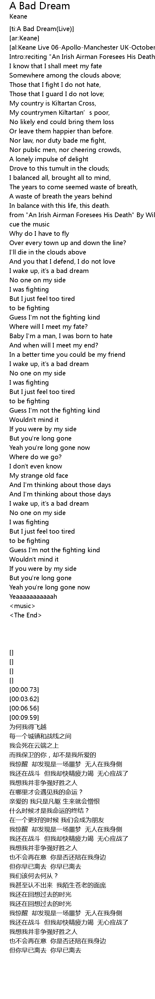 | [00:00.00] | Intro:reciting "An Irish Airman Foresees His Death" by W. B. Yeats |