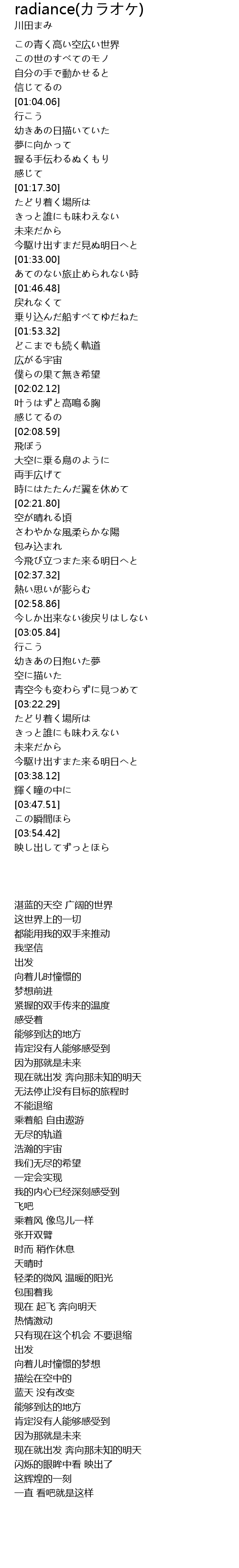 | [00:50.42] | この青く高い空広い世界 |