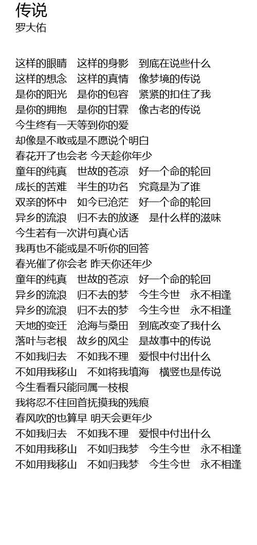 | [03:55.350] | 不如用我移山 不如归我梦 今生今世 永不相逢 |