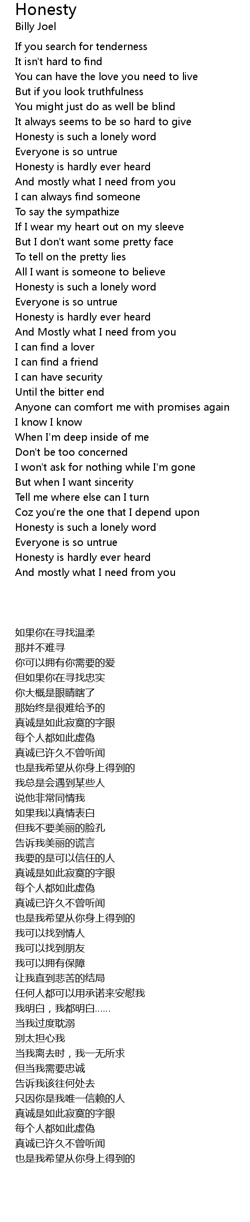Honesty is such a lonely word |