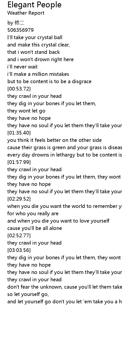 | [03:23.36] | they crawl in your head |
