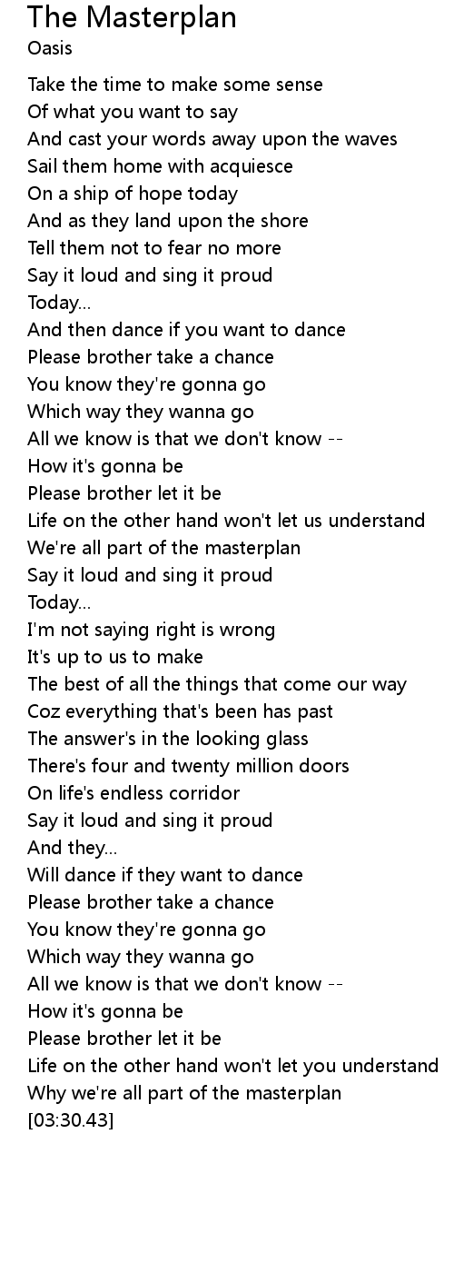 | [01:56.42] | We're all part of the masterplan |