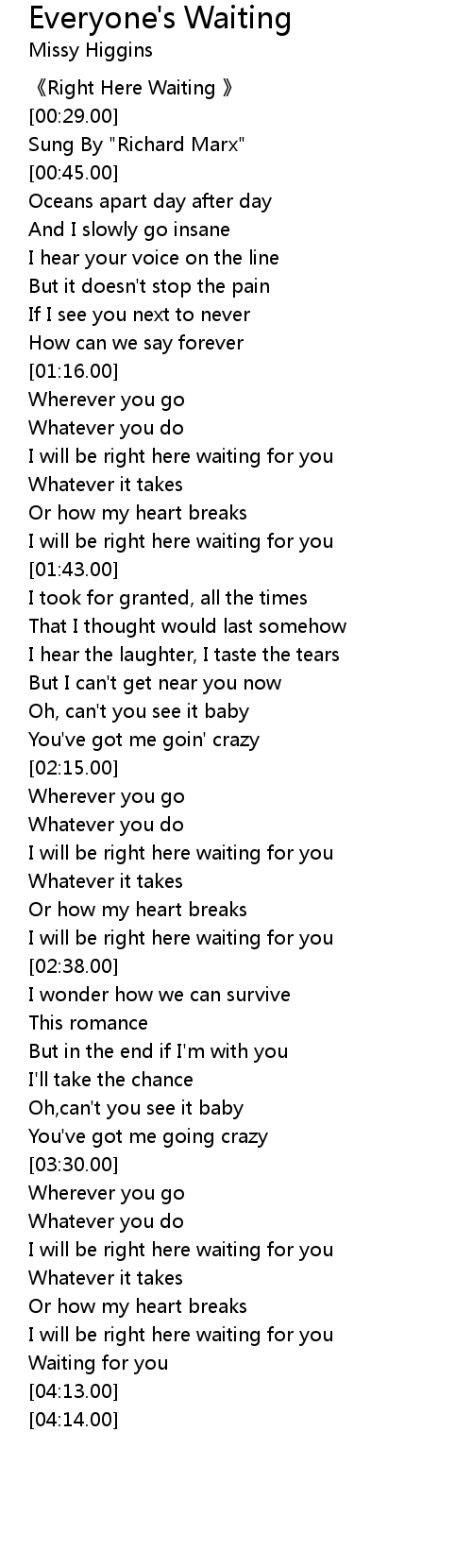 | [00:00.00] | Right Here Waiting |