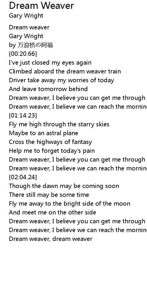 | [03:00.79] | Dream weaver, dream weaver |