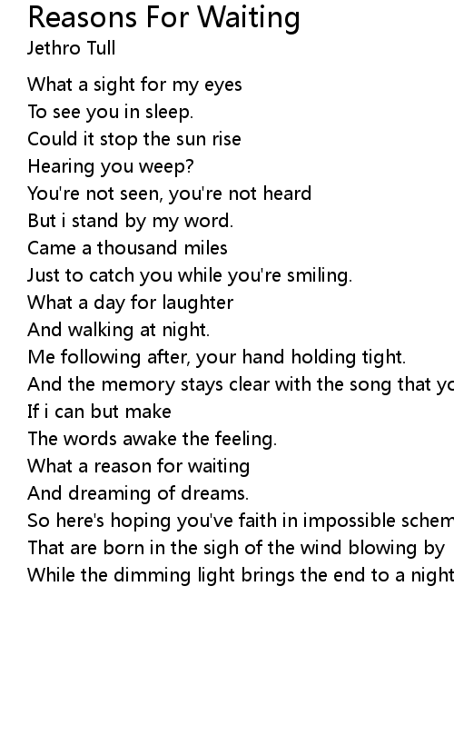 What a reason for waiting |