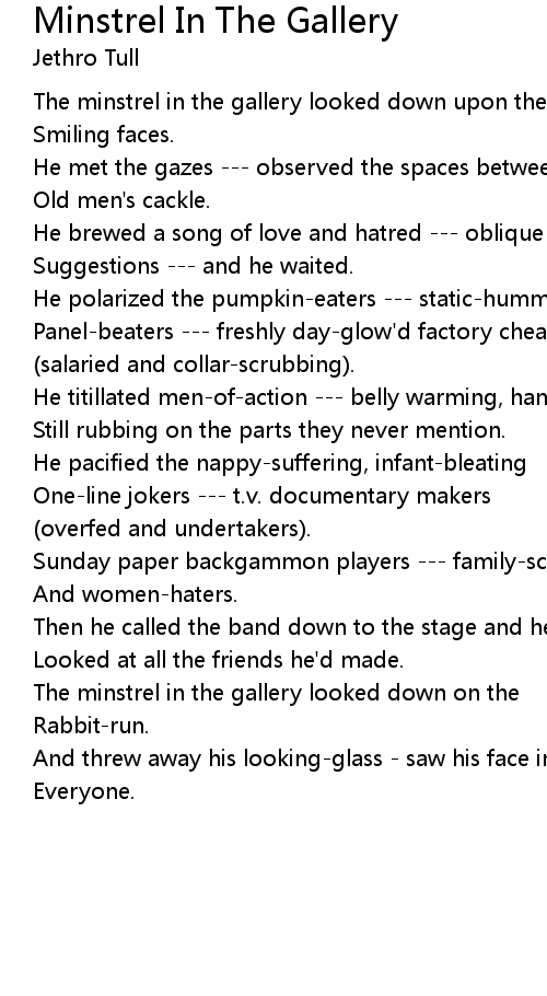 Minstrel In The Gallery Lyrics