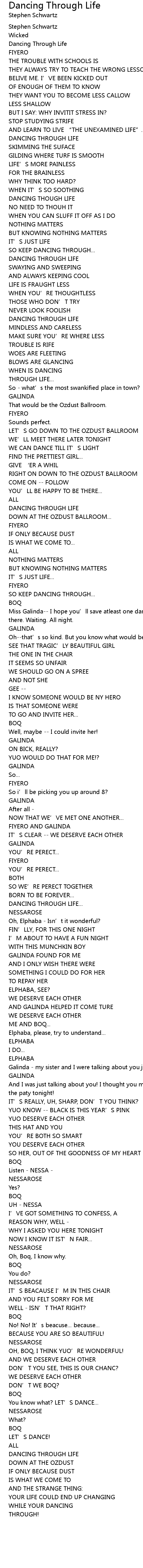 | Miss Galinda I hope you' ll save atleast one dance fir me. I' ll be right there. Waiting. All night. | |