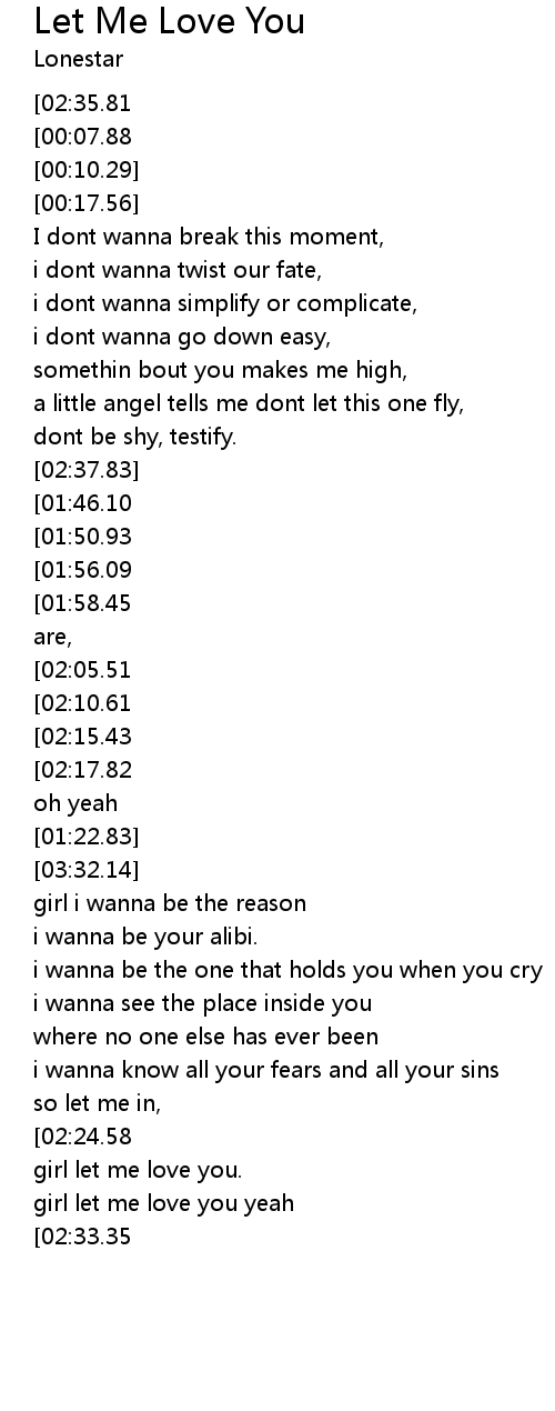 | [03:27.27][02:35.81][00:00.00] | Lonestar Let Me Love You |