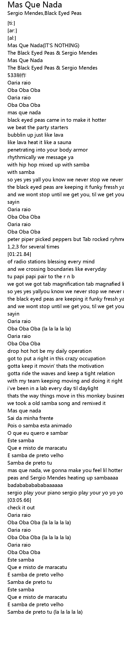 | [00:02.60] | The Black Eyed Peas & Sergio Mendes |