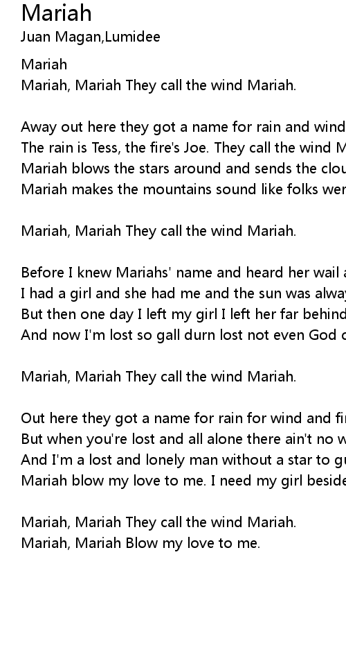 The rain is Tess, the fire's Joe. They call the wind Mariah. |