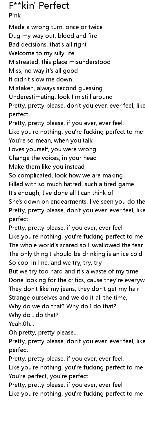 Pretty, pretty please, don't you ever, ever feel, like you're less than fucking perfect |