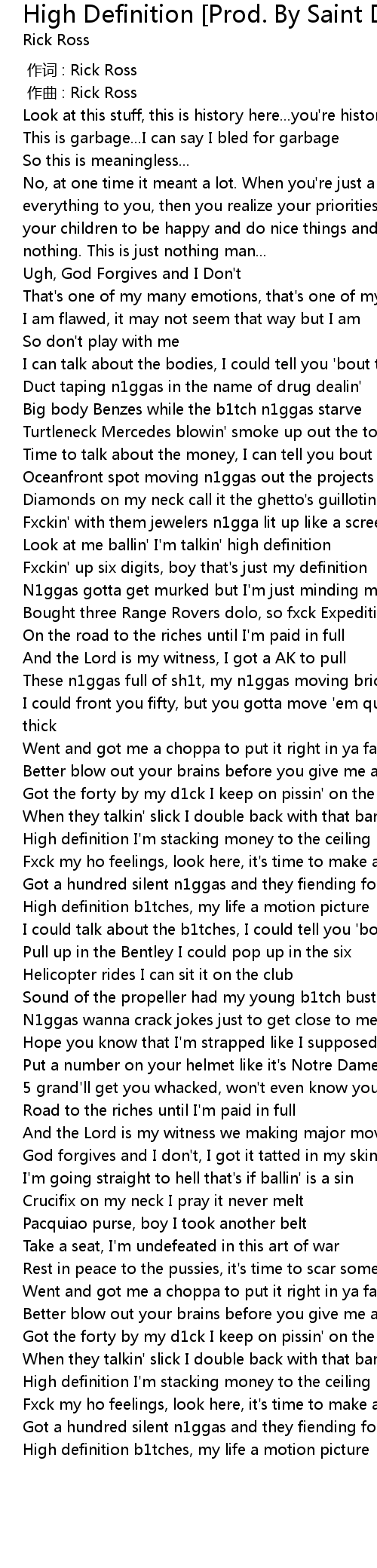 | [01:15.790] | Fxckin' with them jewelers n1gga lit up like a screen, HD |