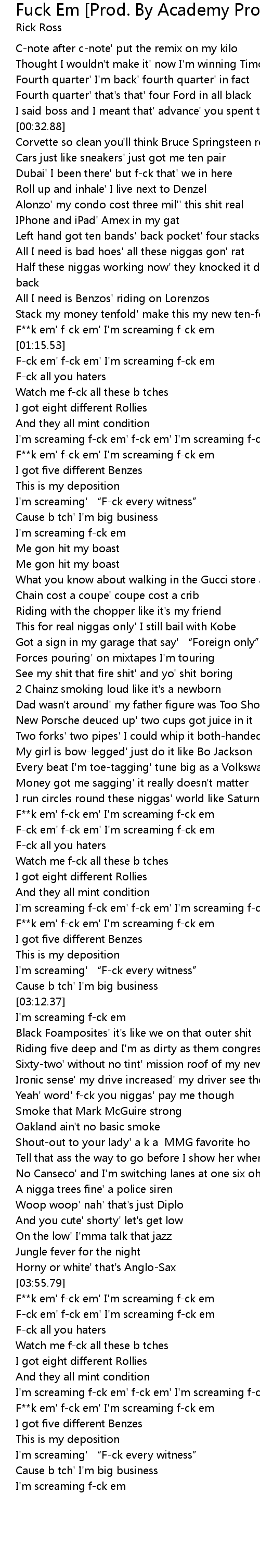 | [03:02.19] | F**k em' f-ck em' I'm screaming f-ck em |