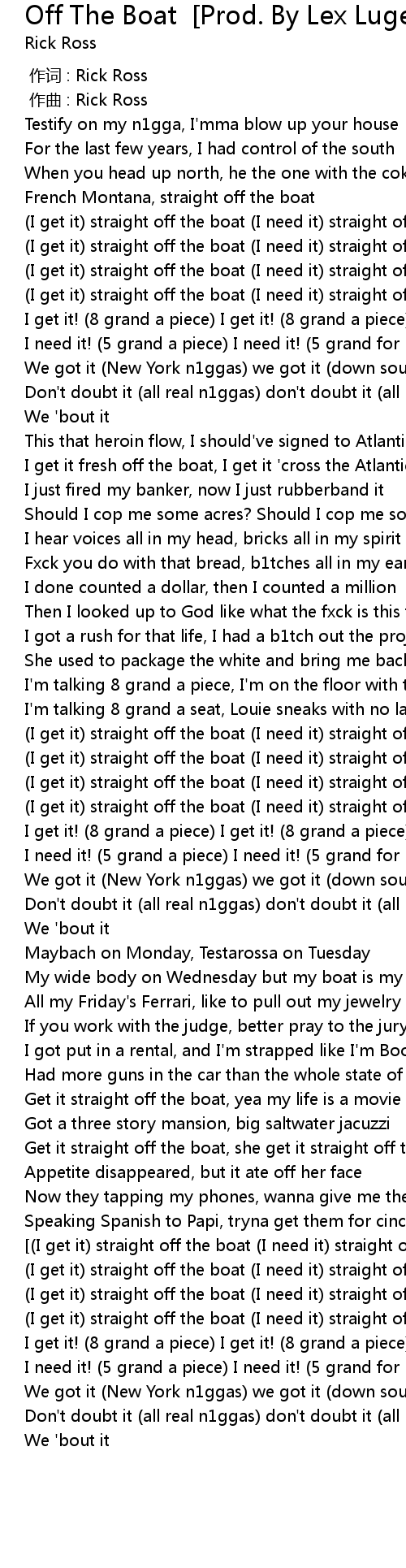 | Song | Off The Boat [Prod. By Lex Luger] |