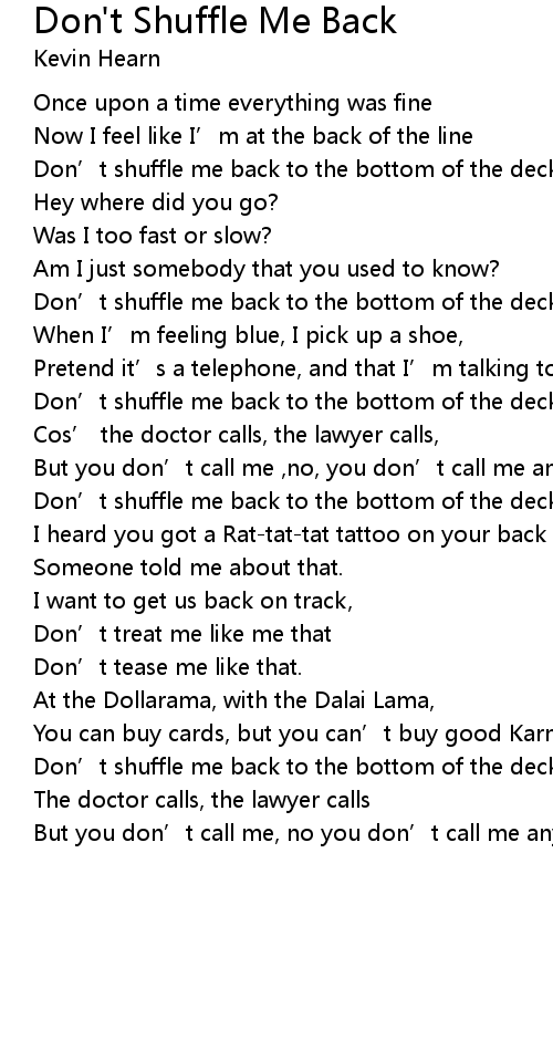 | But you don’t call me ,no, you don’t call me anymore. | |