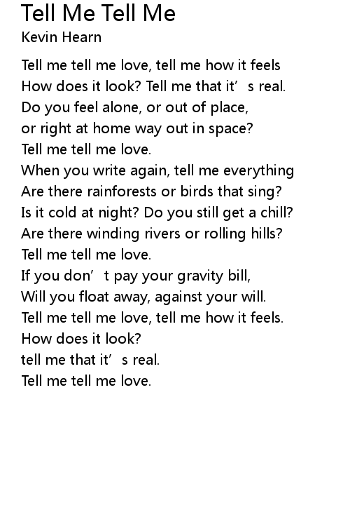 | Tell me tell me love, tell me how it feels. | |