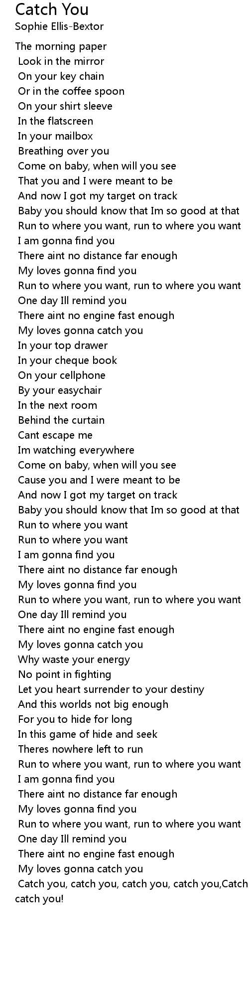 Catch you, catch you, catch you, catch you,Catch you, catch you, catch you, catch you! |