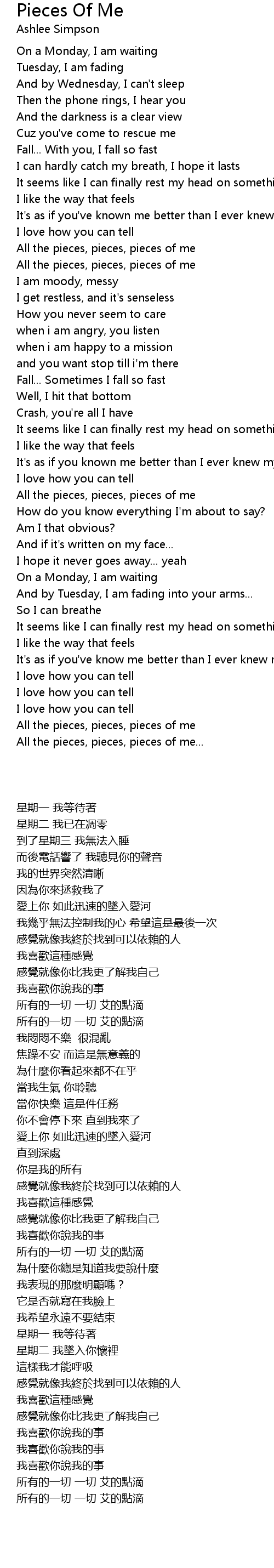 All the pieces, pieces, pieces of me |