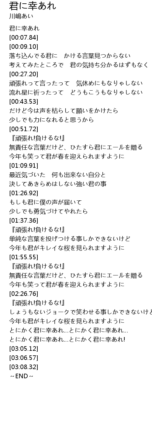 | [00:00.00] | 君に幸あれ |