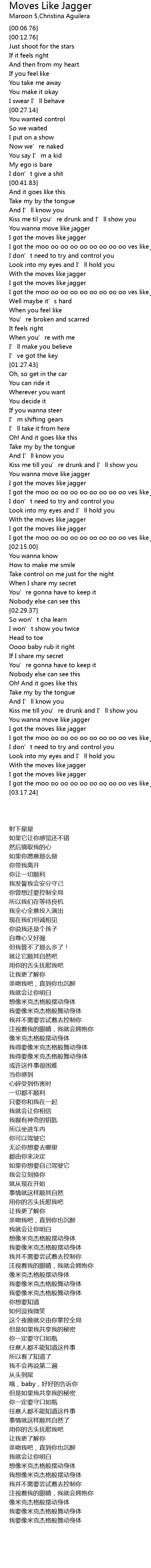 | [02:57.49] | I got the moo oo oo oo oo oo oo oo oo ves like jagger |