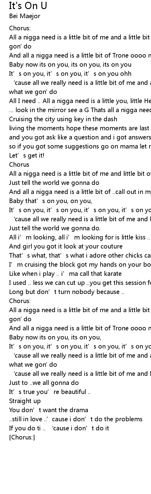 | All a nigga need is a little bit of me and little bit of you | |