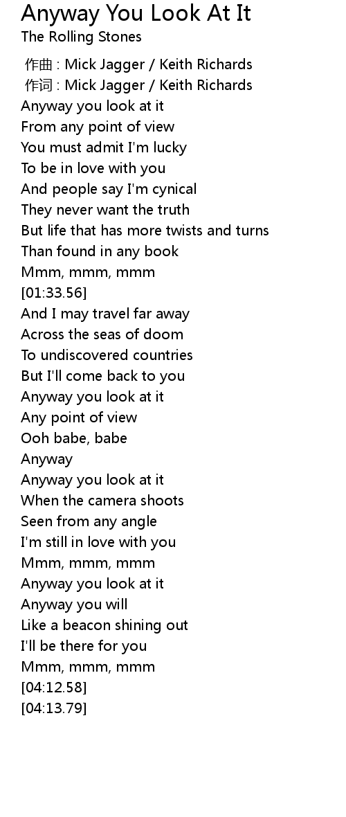 | [00:01.00] | zuò cí : Mick Jagger Keith Richards |