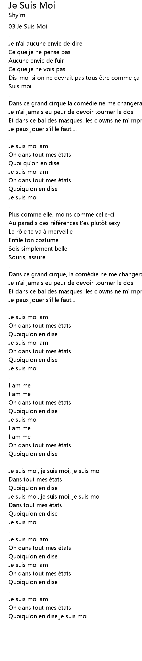 | [02:09.19] | Je suis moi, je suis moi, je suis moi |