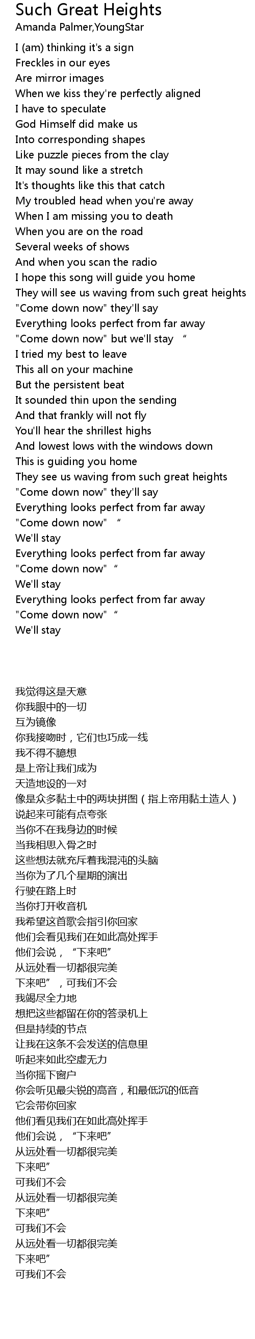 | [01:26.77] | "Come down now" but we'll stay “ |